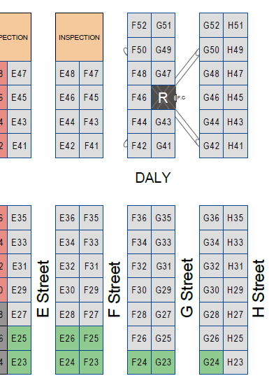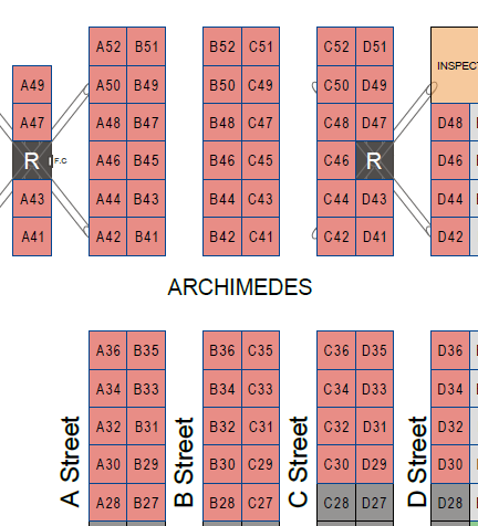 See the sections below for a preview of layouts by each pit division. Click the photos to enlarge. Closer to the event, photos will be updated to include team numbers and pit assignments in the maps.